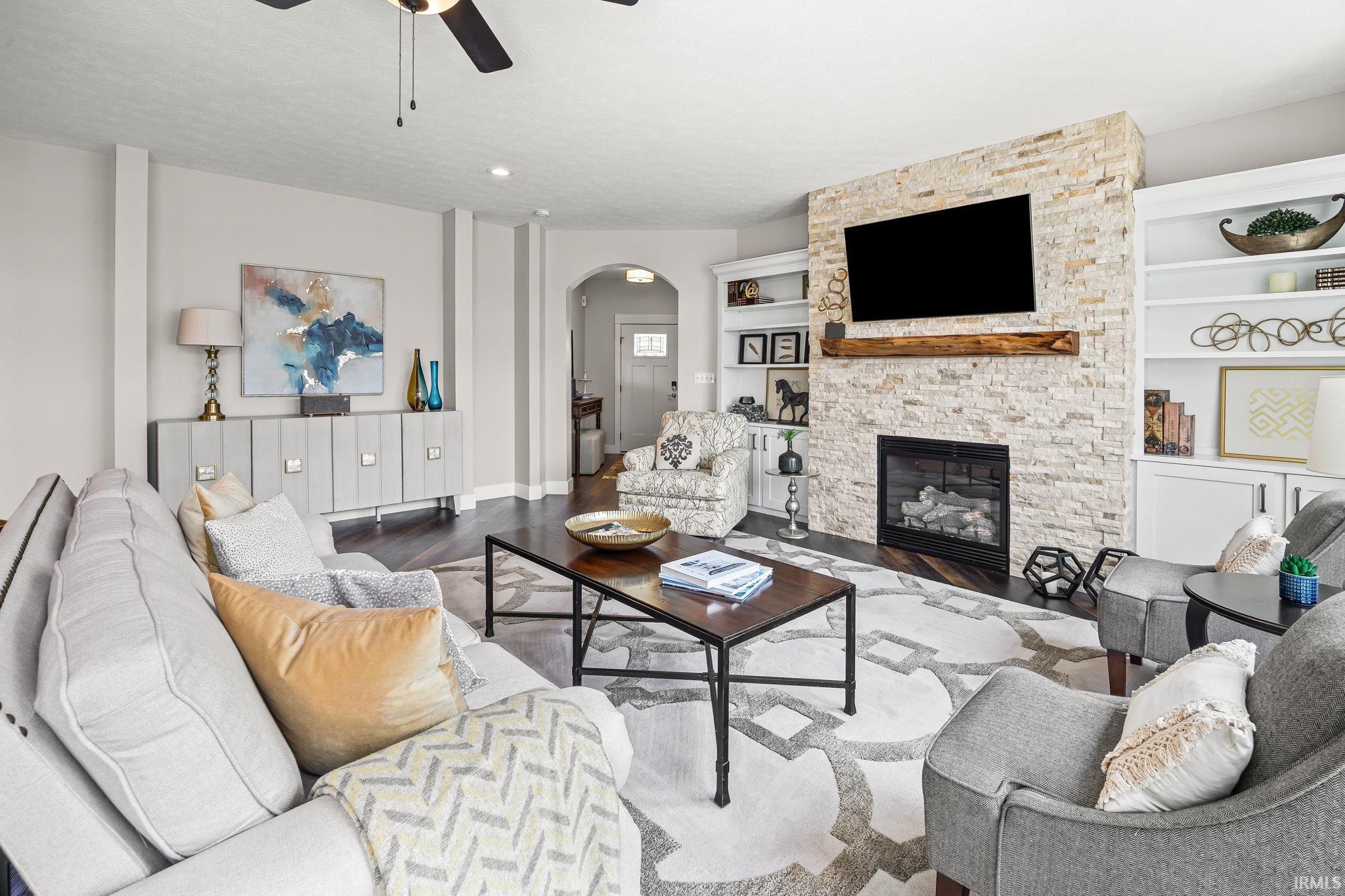 Unique Opportunity for Luxury Ranch Living in Model Home! The Promenade plans boasts 3 bedrooms, plus office. 3 full baths and a second living room, perfect for guests or a mother-in-law suite. Endless upgrades abound from the deluxe kitchen with walk-in pantry, full stone fireplace and custom built-ins, spacious primary suite with zero threshold shower, full camera security system, custom window treatments, heated and cooled garage, this home has it all. Maintenance free Epcon community and located just minutes from Purdue University, across from Coyote Crossing Golf Club, easy access to I-65, shopping, restaurants. Enjoy Community club house with fitness center, pool and pickleball court! Visit our neighborhood model home Wednesday-Sunday, from noon until 5pm.