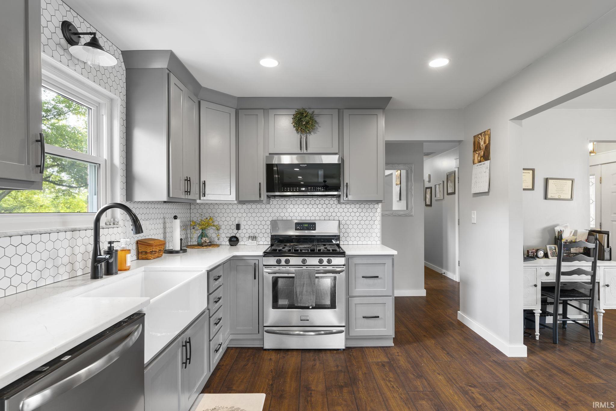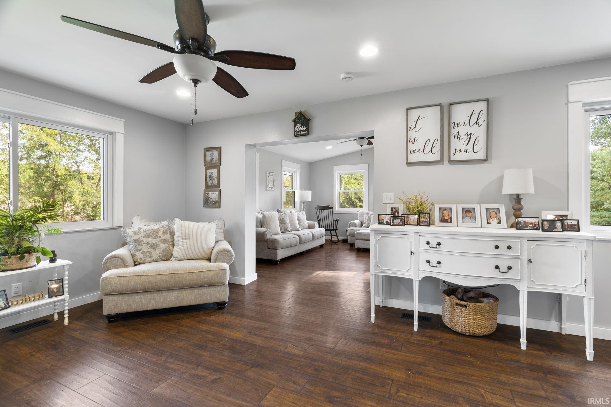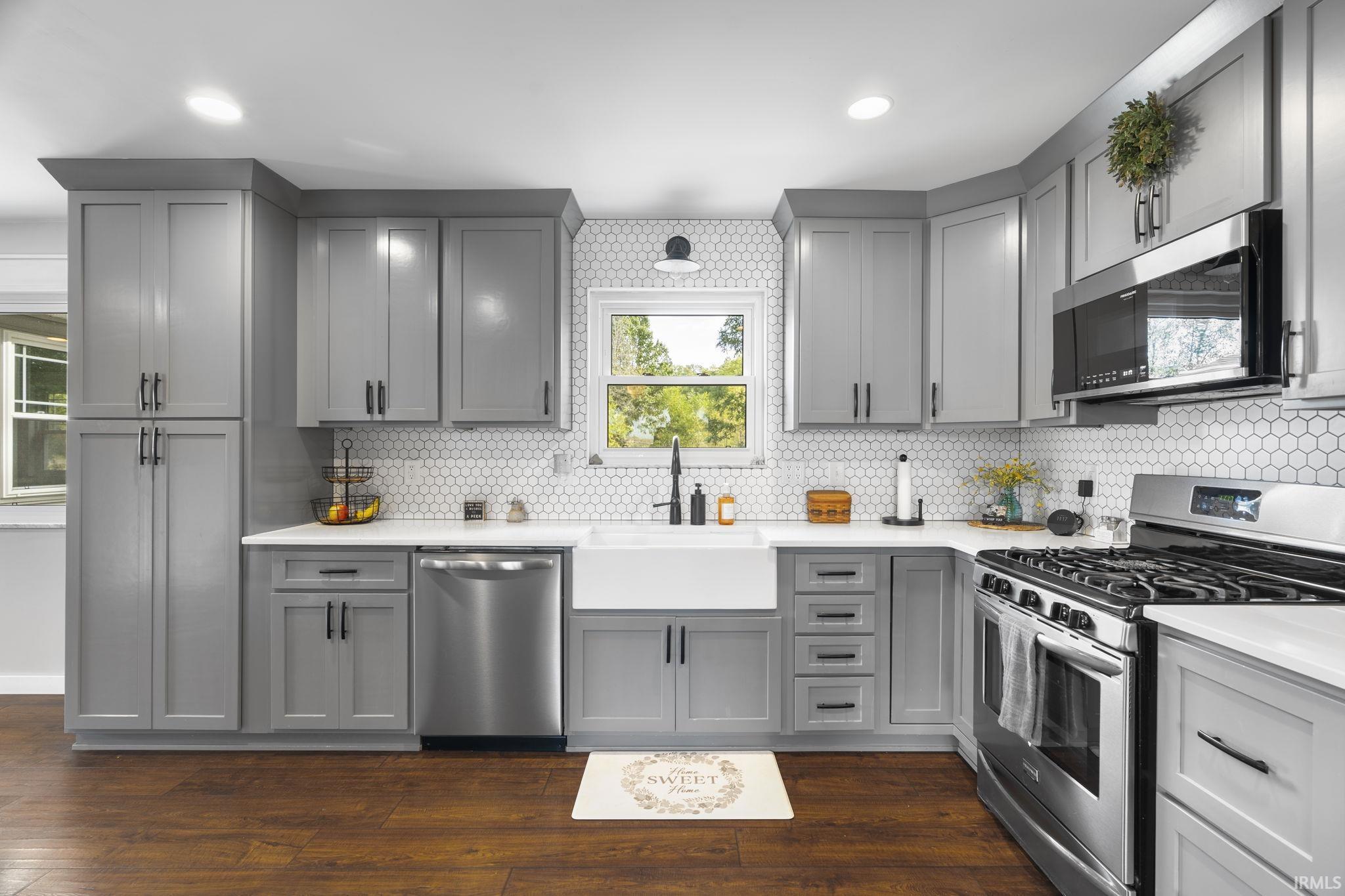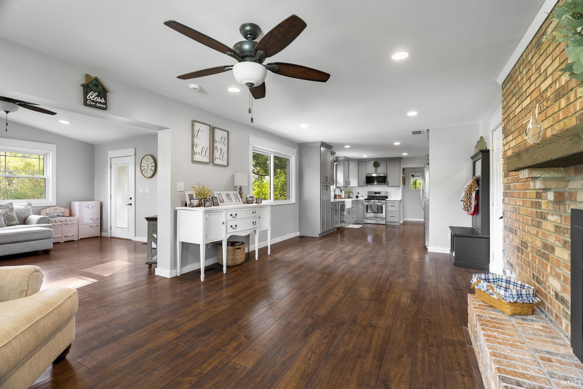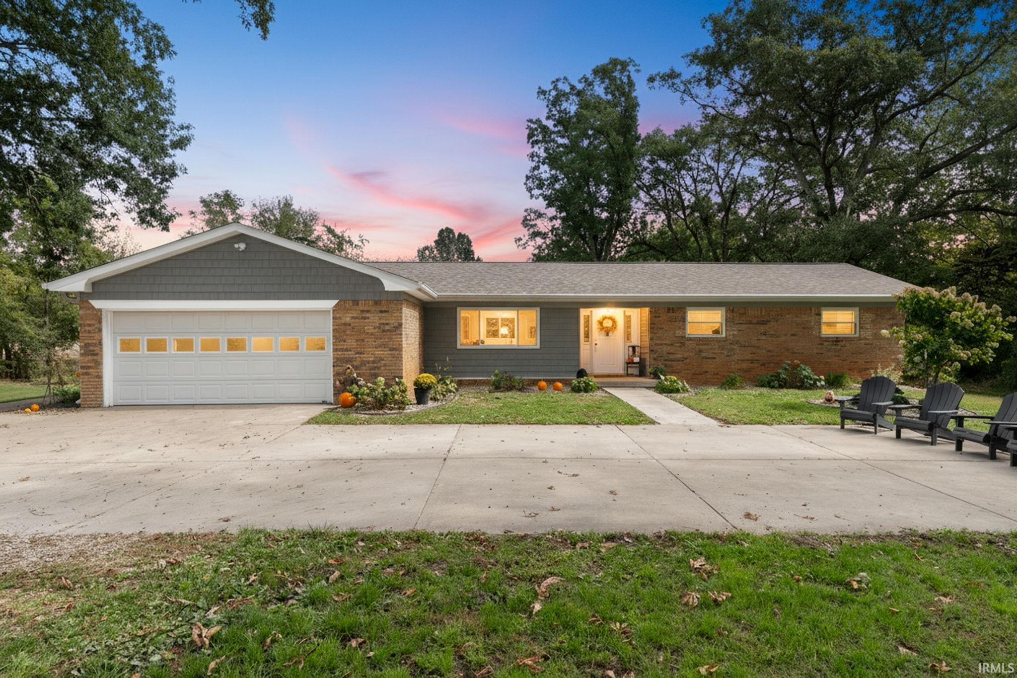 Tucked away at the end of a long private lane, this remodeled ranch sits on just under 5 peaceful acres with a perfect blend of open land and mature trees. This home has been thoughtfully remodeled inside and out, offering comfortable, modern living in a quiet rural setting. Step inside the foyer entry, which opens up to a bright formal dining room. The fully remodeled kitchen (2022) is full of quality finishes, including extra tall custom soft close cabinets, quartz countertops, a farmhouse sink & tile backsplash. The generous kitchen opens up to a cozy living room which features a new gas log fireplace. Opposite the living room is a bright & spacious family room with vaulted ceilings and tons of windows, overlooking the surrounding woods and open yard. The home features 3 beds and 2 full baths, with both the hall bathroom and master bath being fully remodeled with high end finishes. Almost everything in this home has been updated! Updates include: newer roof, gutters, siding, sidewalks, garage man door, windows, electrical, luxury laminate flooring, carpeting, trim, appliances, Kinetico water softener and new well! Enjoy the outdoors in the large backyard & relax & entertain on the new back patio area. Or take a hike in the woods, go exploring, mushroom hunting or bird watching...as half the property is wooded! The property is also well-suited for a hobby farm, with a fenced pasture area, a 12x20 livestock barn, a chicken coop and a 30x40 pole barn complete with a hay loft—perfect for animals, equipment, or extra storage. There’s still plenty of space for gardening, outdoor projects, or simply enjoying the peace and privacy. If you’ve been looking for a move-in-ready country home with room to grow, this one checks all the boxes. Located just 10 minutes to West Lafayette shopping, schools & Purdue University. Schedule your tour!