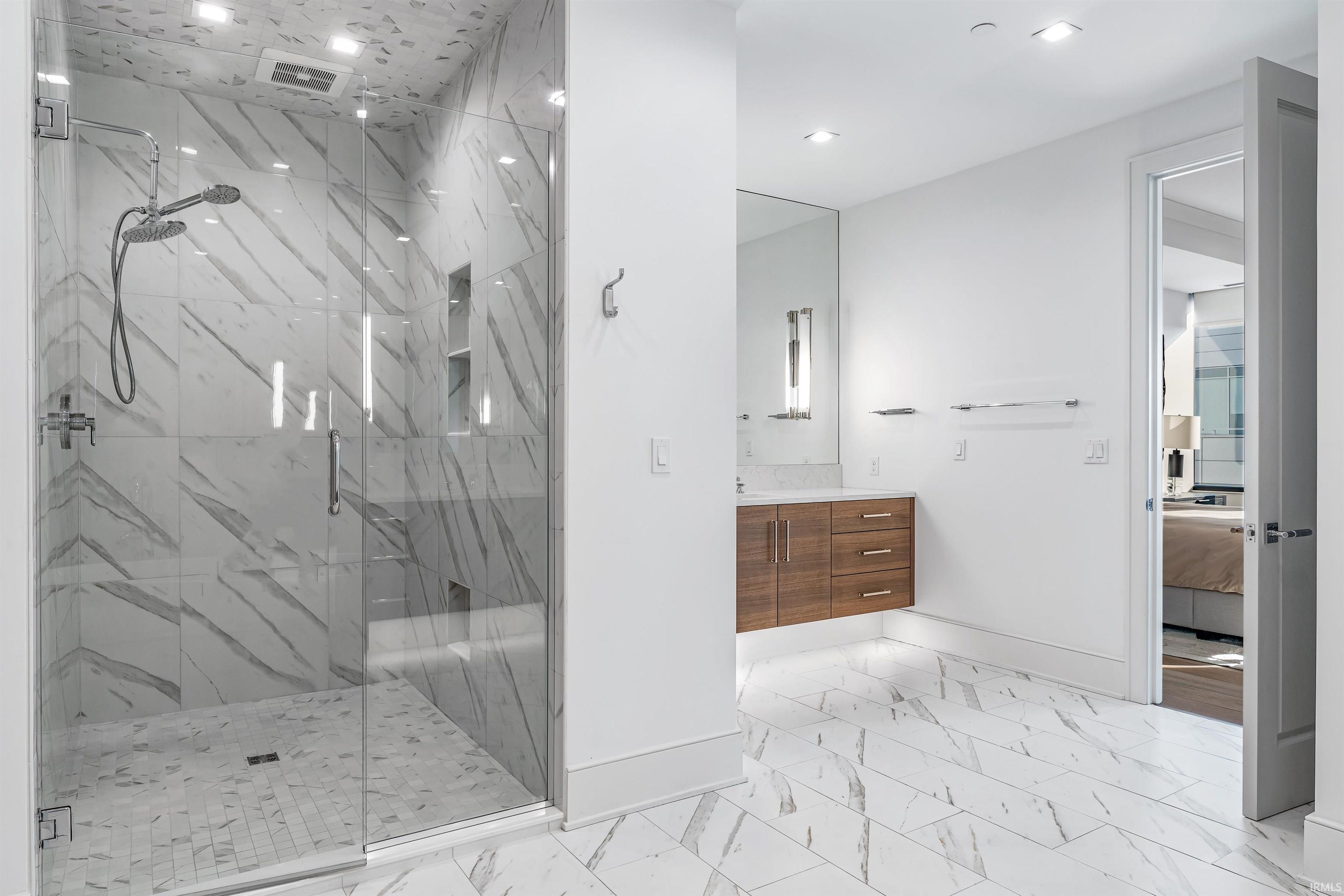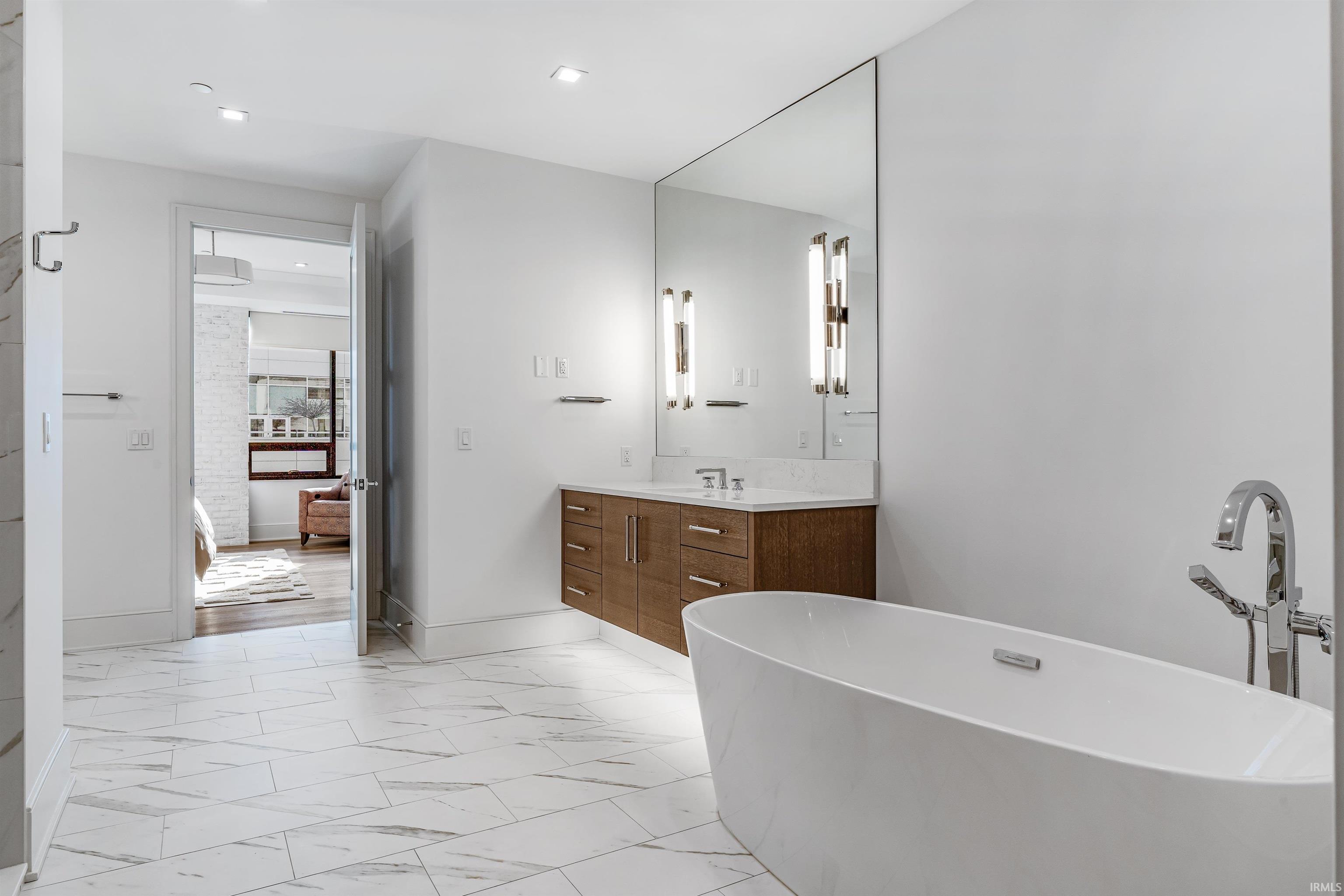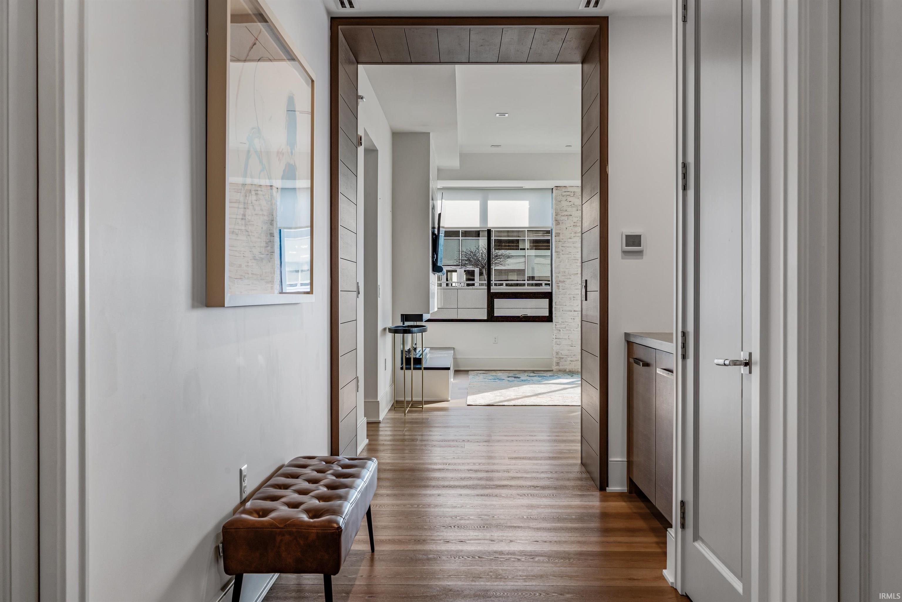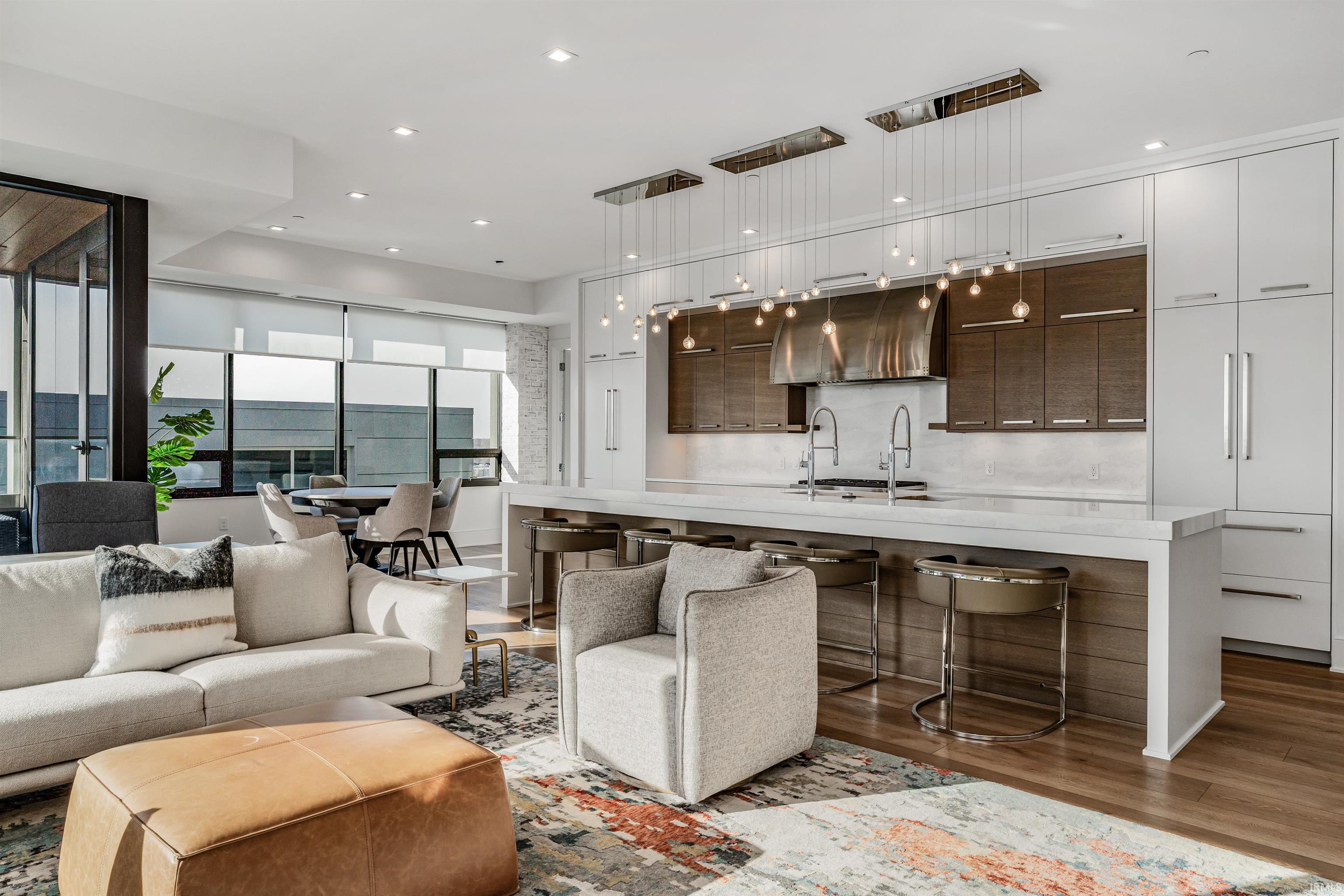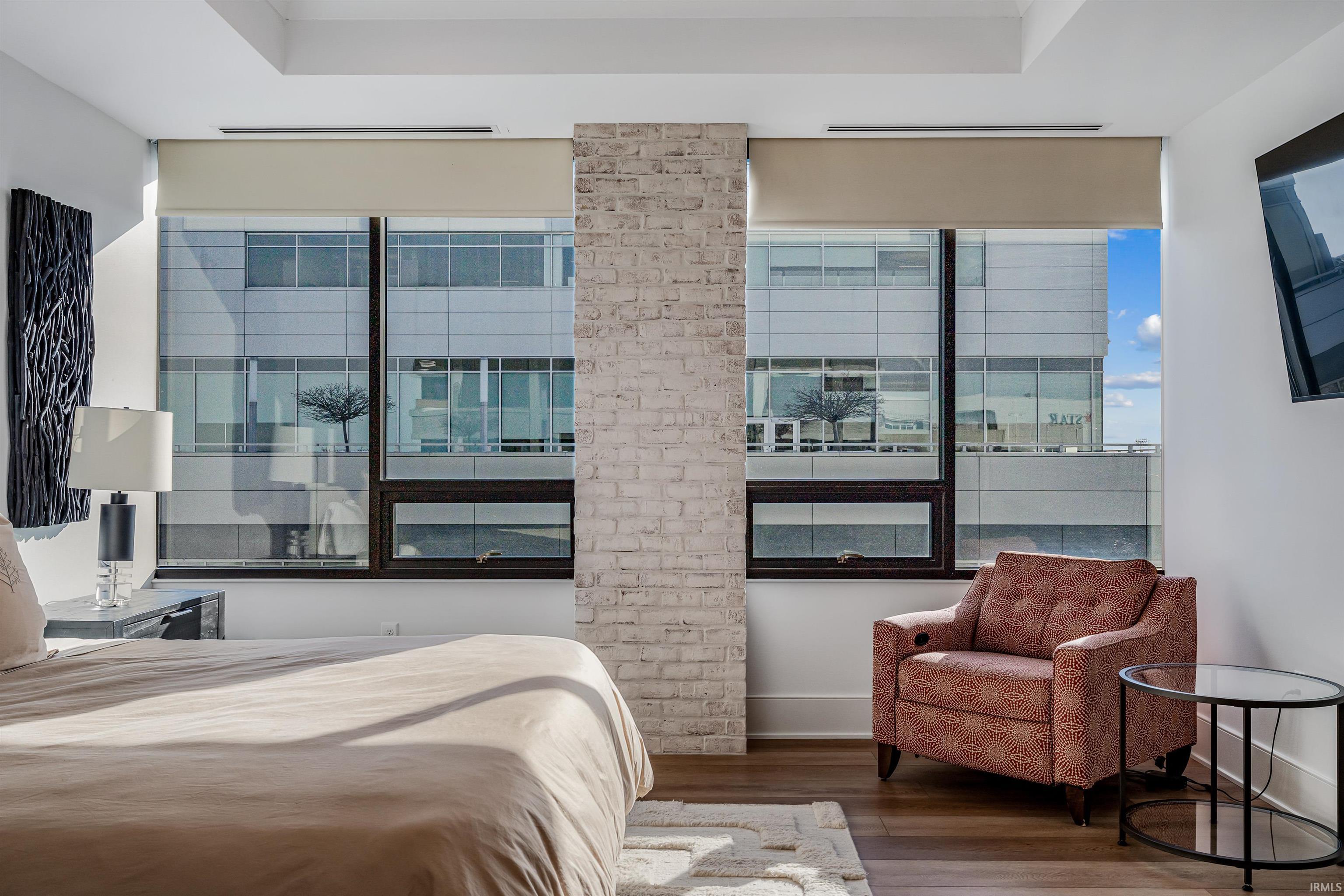 Welcome to downtown Fort Wayne living at its finest—an effortlessly stylish retreat perched above the city in the coveted Metro Building. Curated by renowned designer Frank Souder and brought to life with RW Robrock’s impeccable craftsmanship, this chic 2-bedroom, 2.5-bath residence captures unparalleled skyline views from every room, along with private parking, exclusive rooftop amenities, and instant access to The Landing, Promenade Park, and some of the city’s most celebrated dining. Modern luxury and turn-key sophistication shine in every high-end, high-tech detail. Unit #710 unfolds with generous room sizes and sweeping west-facing vistas—sunsets included—all the way to the Electric Works campus & unobstructed views of the TinCaps fireworks. The chef’s kitchen is a true showpiece, thoughtfully planned with professional-grade appliances, custom cabinetry, a sprawling island/breakfast bar, premium natural stone selections, quartz surfaces, and a swanky butler’s area ideal for entertaining. Both bedrooms offer sleek en-suite retreats featuring tall ceilings, natural stone finishes, under-vanity lighting, and impressive storage. The primary suite elevates the experience with dual walk-in closets, a garden tub, heated tile floors, and an expansive tile walk-in shower. A lovely west-facing veranda, spacious laundry room, and a dreamy half bath complete the interior. Includes two deeded parking spaces (valued at $90,000) in the secure, private garage with a car wash station, plus additional storage available for rent. Residents of the ultra-lux Urbana Condos enjoy access to a beautifully designed rooftop space with grill, pergola, and firepit; priority-dispatch elevators; a state-of-the-art fitness studio; private parking; and a dedicated conference and recreation area. A rare blend of design pedigree, effortless comfort, and unmatched urban access—this is downtown living reimagined.